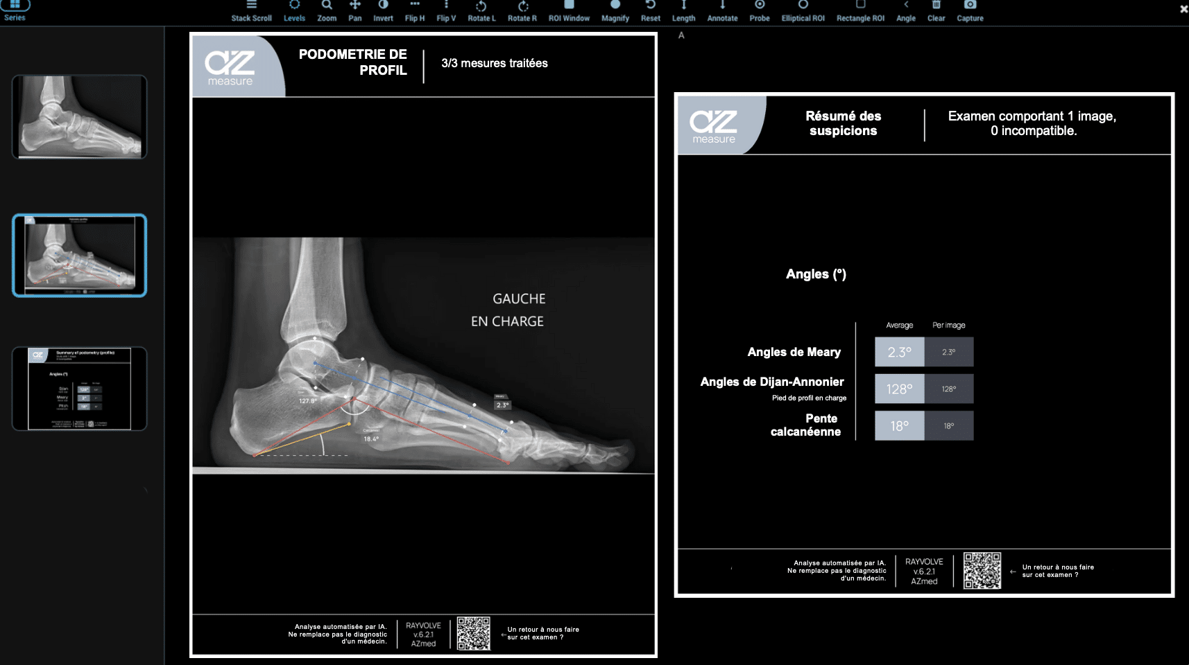 - AZmeasure : réalisation automatique des mesures ostéo-articulaires (podométrie, pangonométrie, coxométrie, rachis).