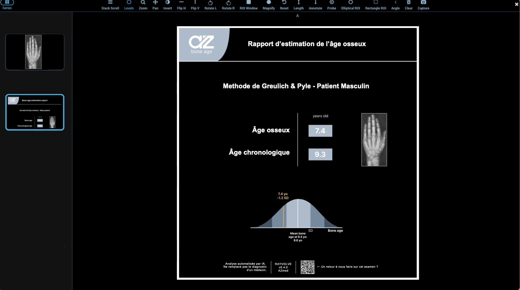 - AZboneage : évaluation automatique de l’âge osseux basée sur la méthode Greulich & Pyle.
